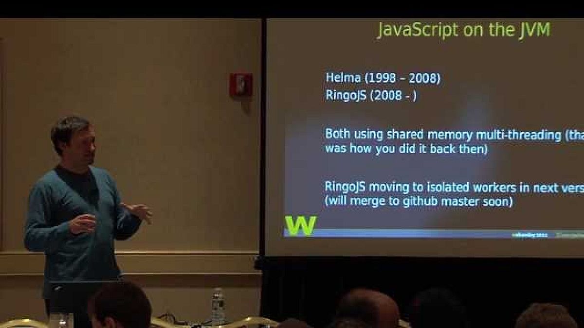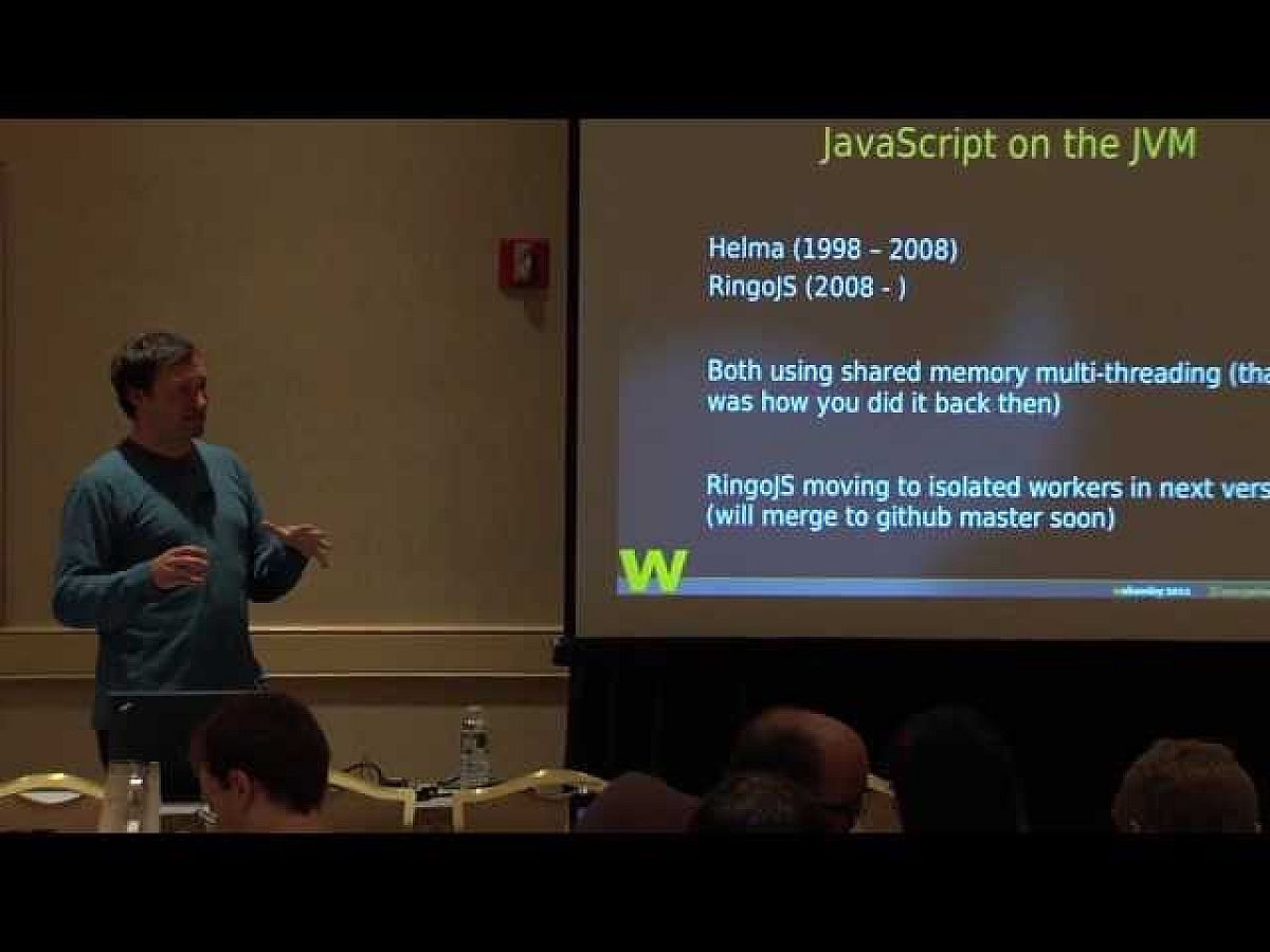 Hannes Wallnöfer, a RingoJS egyik fejlesztőjének előadása a többszálú JavaScript-futtatás egy új modelljéről, ami az osztott memóriával összefüggésbe hozható problémák nélkül teszi lehetővé az erősen párhuzamos feldolgozást.