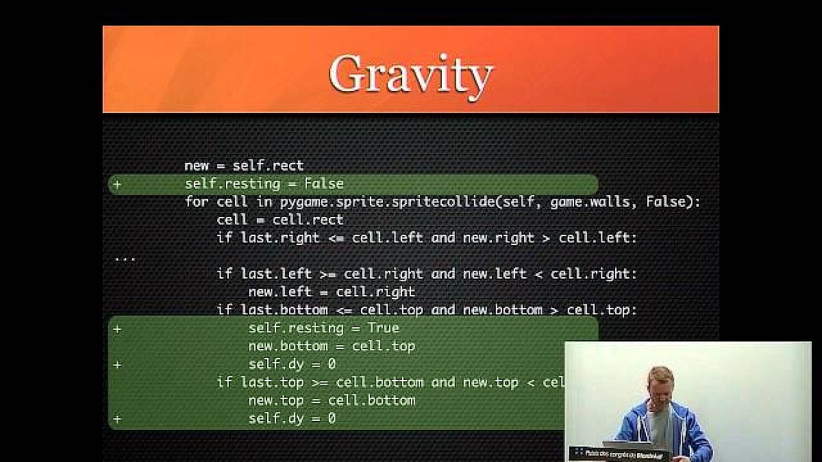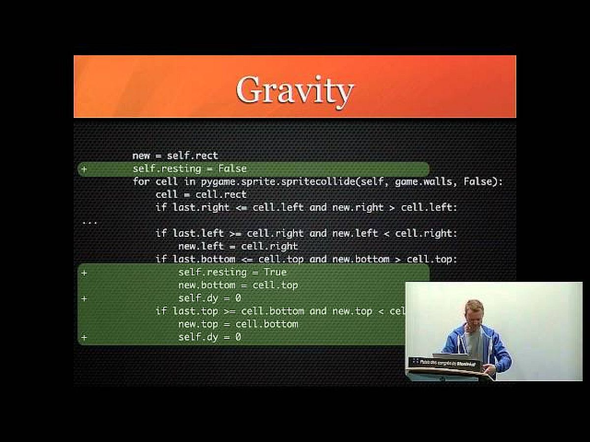 Richard Jones előadása a játékprogramozás alapjaiba avatja be az érdeklődőket - méghozzá egy nem kifejezetten ilyen célra felhasználásáról ismert nyelvben, a Python-ban. Az idei PyCon-ról származó előadás egészen az alapokkal: a grafikus képernyő kezelésével és a bitmapek kirajzolásával kezdi, majd a sprite-ok megvalósításával, az eseménykezeléssel folytatja, végül a 3D-s grafikára és a hanggenerálásra is kitér.